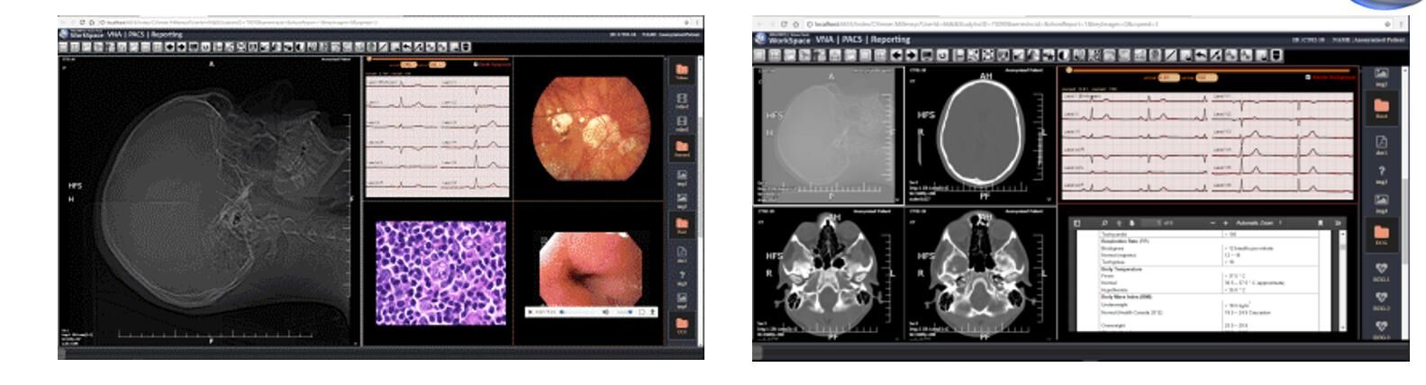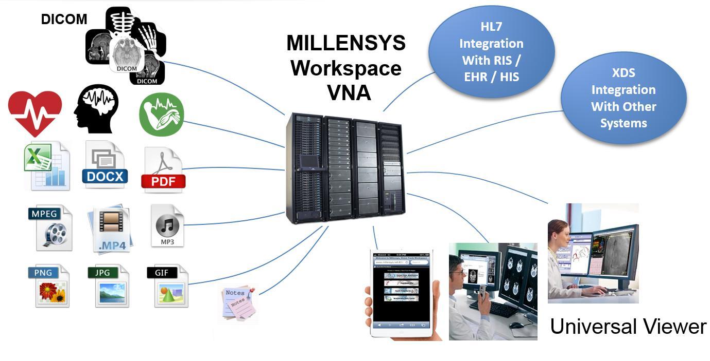 To Workspace VNA συνθέτει μία πανίσχυρη διαδικτυακή λύση ουδέτερης αρχειοθέτησης περιλαμβάνοντας ταυτόχρονα ενσωματωμένες λειτουργίες PACS και διάγνωσης. Το Workspace VNA λειτουργεί τόσο σε περιβάλλον τοπικών εγκαταστάσεων όσο και σε περιβάλλον cloud, χρησιμοποιώντας πραγματικά διαδικτυακό viewer τελευταίας τεχνολογίας HTML5 και τεχνικές δυναμικής φόρτωσης ιατρικών δεδομένων για την επιτάχυνση της μεταφοράς εικόνων και video μέσω συμβατικών γραμμών επικοινωνίας. Η λύση περιλαμβάνει πλήρη πακέτα για την αρχειοθέτηση, την επεξεργασία δεδομένων, τη διάγνωση εικόνων, την εκτύπωση, τη γνωμάτευση, το διαμοιρασμό εξετάσεων και τη διανομή αποτελεσμάτων, εικόνων και γνωματεύσεων τόσο σε χρήστες εντός τοπικού δικτύου όσο και σε χρήστες μέσω του διαδικτύου.